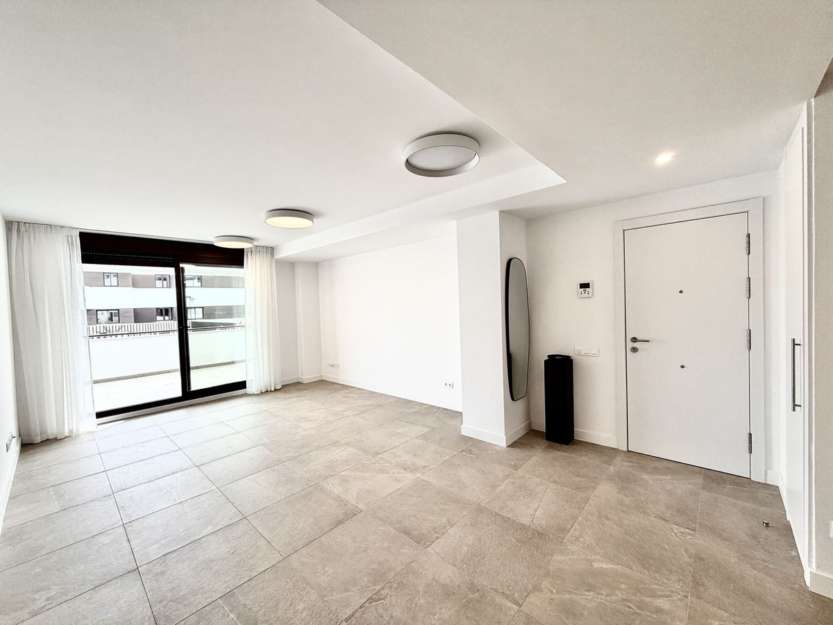 The open-plan living area with a modern kitchen opens onto a spacious private terrace — perfect for enjoying the Mediterranean lifestyle.
