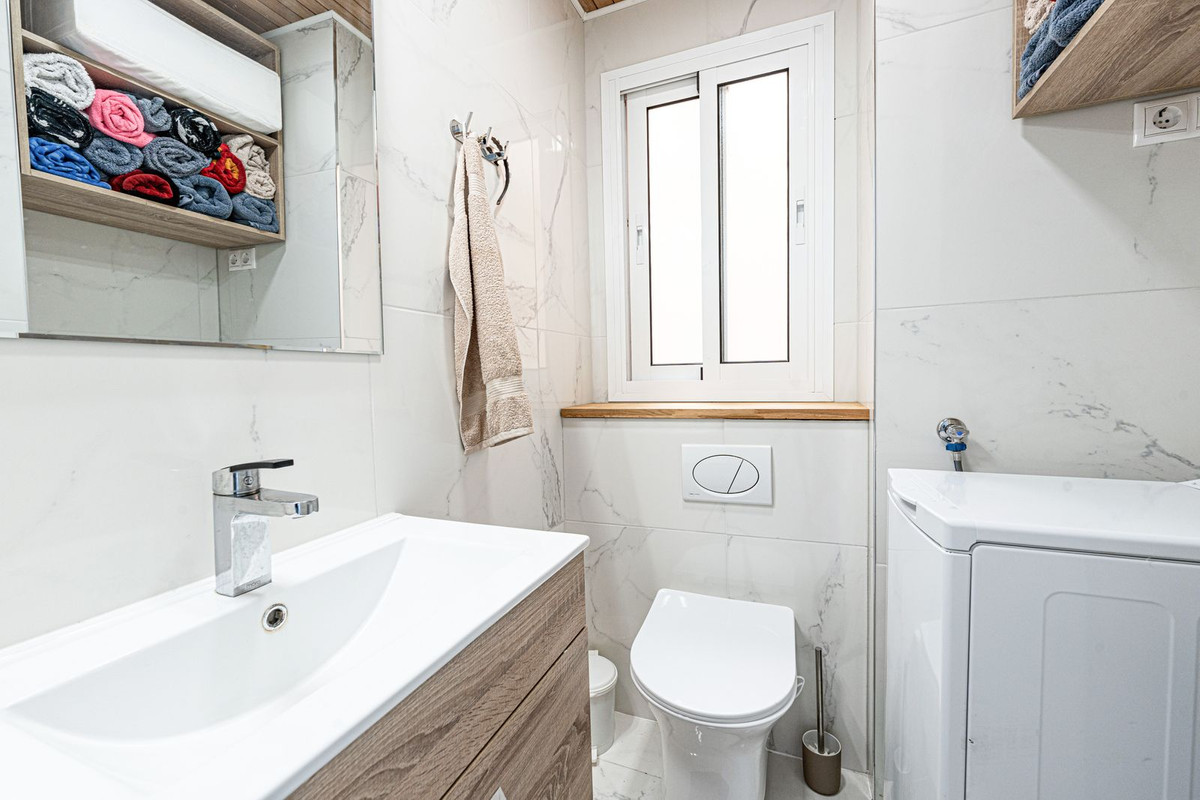 For sale, in the heart of Fuengirola's seafront center, next to Paseo Marítimo Rey, is a renovated two-bedroom apartment in excellent condition and built to a high standard. The apartment's terrace has wonderful unobstructed views of the sea and Torreblanca and the port of Fuengirola. All necessary amenities are right next door, and you can enjoy a sunny stroll along the promenade and the beach from the apartment.