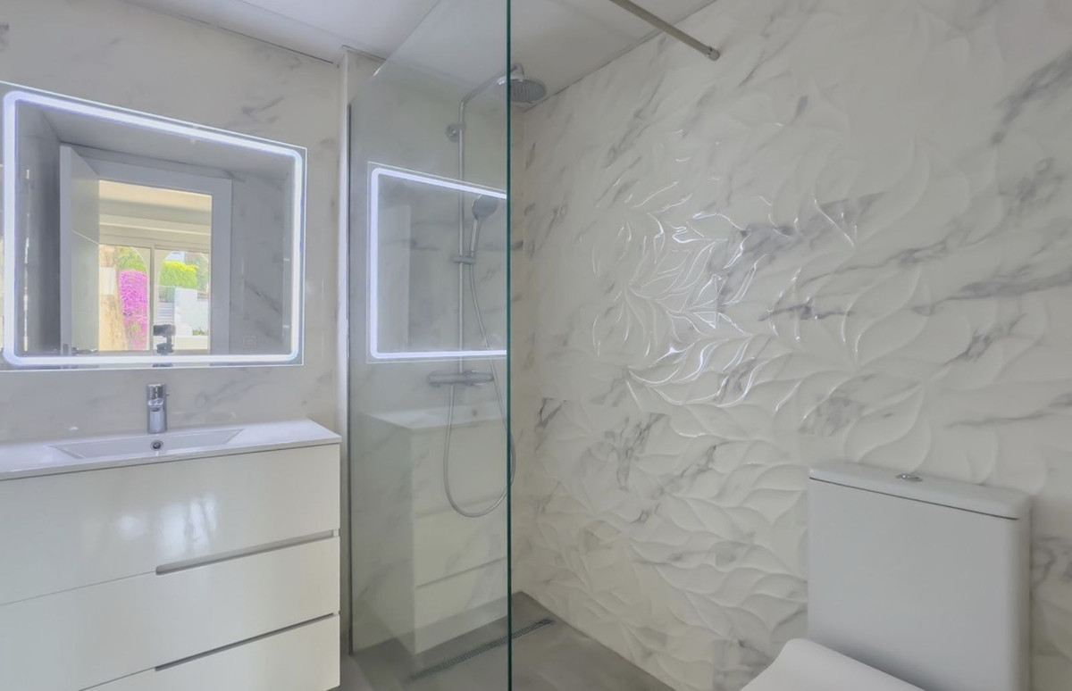 Upon entering the property, you are greeted with your own allocated parking space. A staircase leads up to the front door, where you step into a spacious open-plan living area with sliding glass doors opening onto a terrace. Adjacent to the living area, separated by a step is the newly fitted kitchen and dining area. Stairs leads to the three bedrooms, each with its own bathroom. The master suite benefits from ensuite facilities. At the end of the staircase is a laundry room and a door leading you to the large rooftop terrace with open views. The property also has a spacious separate apartment in the basement area of the property. The urbanisation benefits from communal swimming pools and lush garden areas.