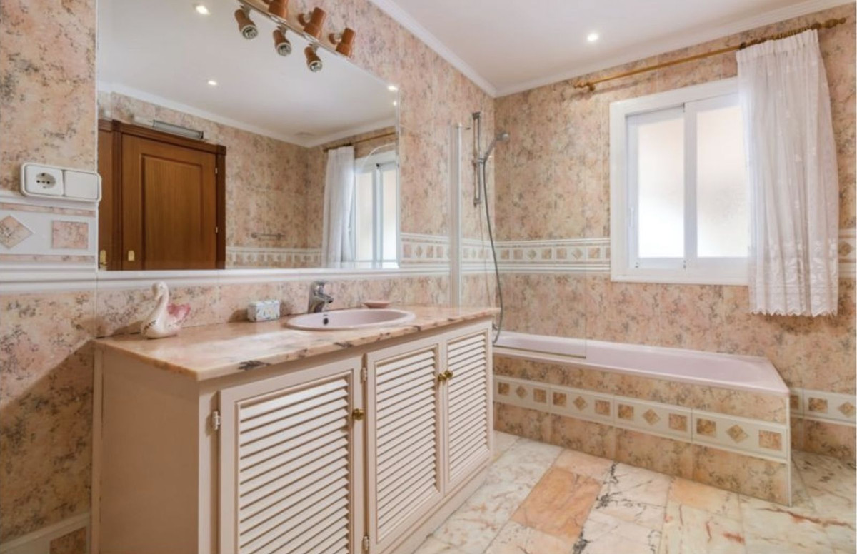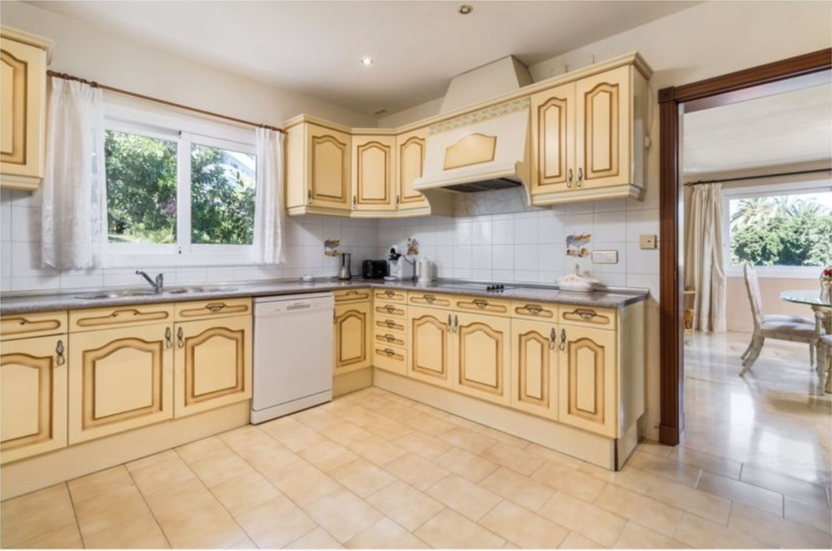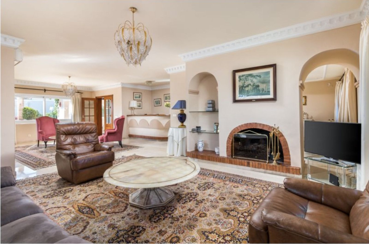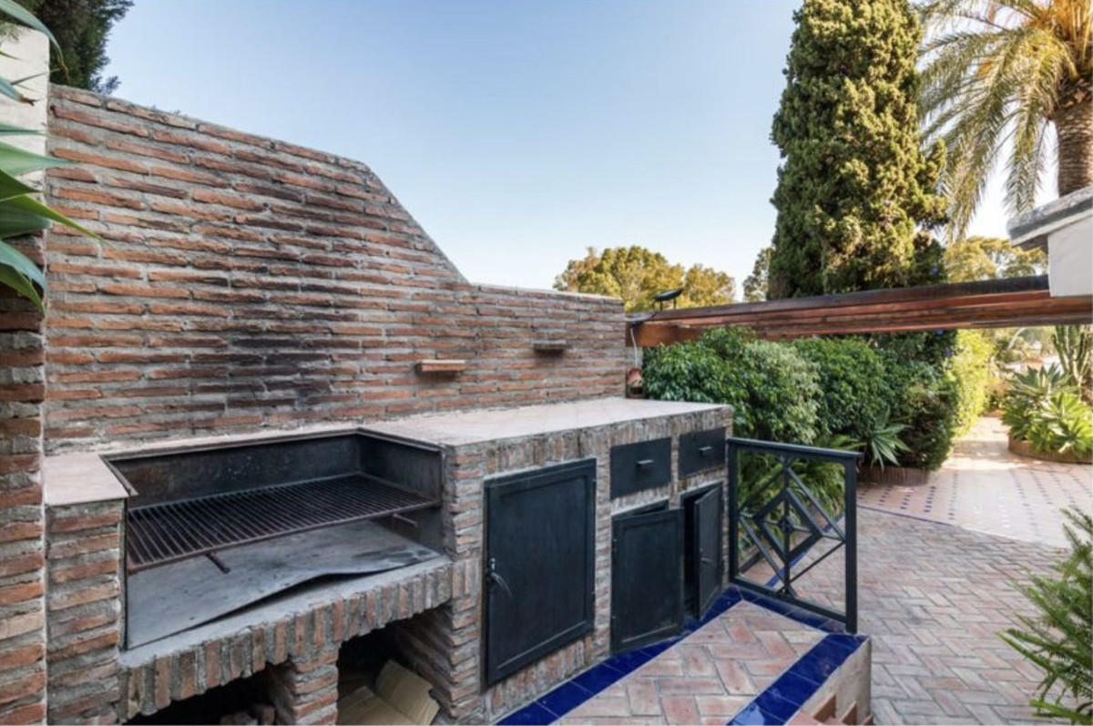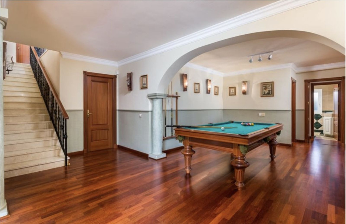 The master suite is located on the upper floor and has doors opening on to a terrace. The formal drawing room has double aspect views, a working fire place and sliding doors on to a large covered terrace. From the drawing room an arch leads to the formal dining room which easily seats 8 persons and further in to a good size fully fitted kitchen which also have access from the hall. The ground floor offers two double bedroom suites, an additional kitchen facilitating the BBQ area and a second reception which currently is used as a snooker room. Again doors open to a sunny covered terrace.