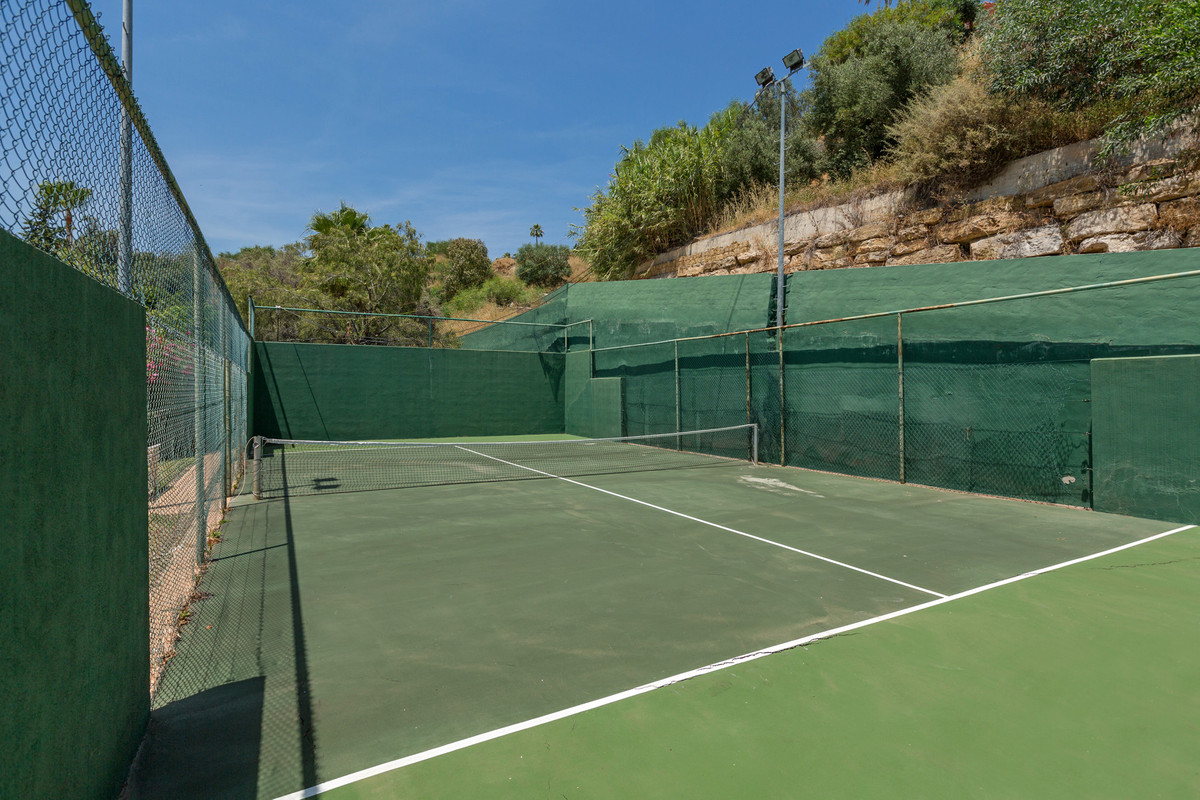 Designed for effortless indoor-outdoor living, the villa offers multiple dining terraces, a large swimming pool with sun deck, a poolside bar and gazebo, and a fully equipped Provençal-style kitchen ideal for hosting family and friends. Additional amenities include a private paddle tennis court, billiard room, wine cellar, and easy access to the Marbella Football Academy