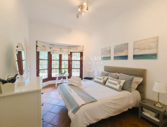 Experience refined living in this classic-style 5-bedroom, 4-bathroom villa perfectly positioned on the front line of the prestigious San Roque Golf Course. Enjoy breathtaking panoramic views over the fairways, and beautiful gardens that offer both privacy and charm.