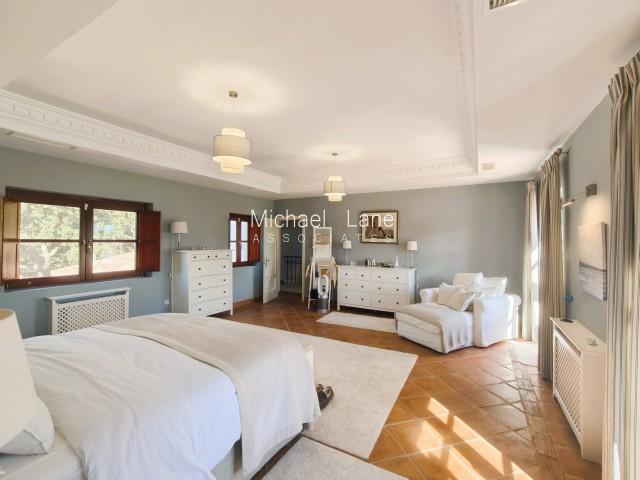 The large master suite boasts an en suite bathroom and direct access to a private terrace with stunning golf and garden view, the perfect spot to unwind and enjoy the tranquil surroundings.