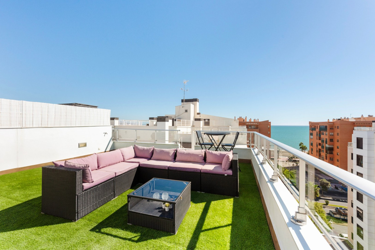 Near the beach in Málaga, this penthouse stands out as an ideal retreat for those looking to combine comfort with a contemporary lifestyle. This magnificent penthouse, with a constructed living space of 85 m² plus 58 m² of terrace, two parking spaces in the underground garage, and a storage room, offers a practical and functional design, providing everything needed for those who wish to enjoy life on the Costa del Sol.