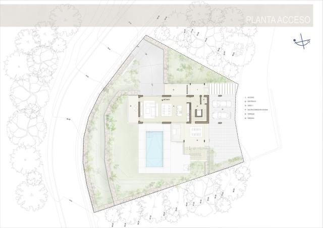 Basement Level The lower level includes a closed garage for up to four vehicles, a technical room for utilities, and a separate room for the pool equipment.