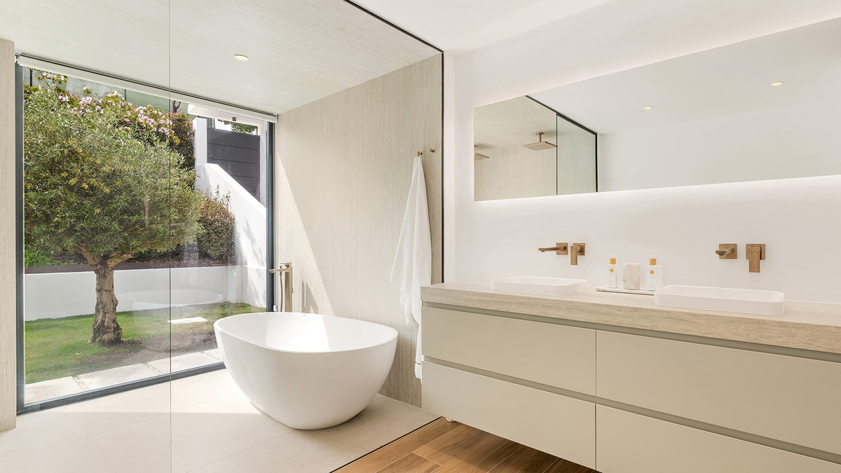 The villa is built mainly all on one level plus lower level, quite rare to find on the market. It has a fresh, modern feel throughout. Decorated in a soft, neutral palette, it feels relaxed, luminous and welcoming.