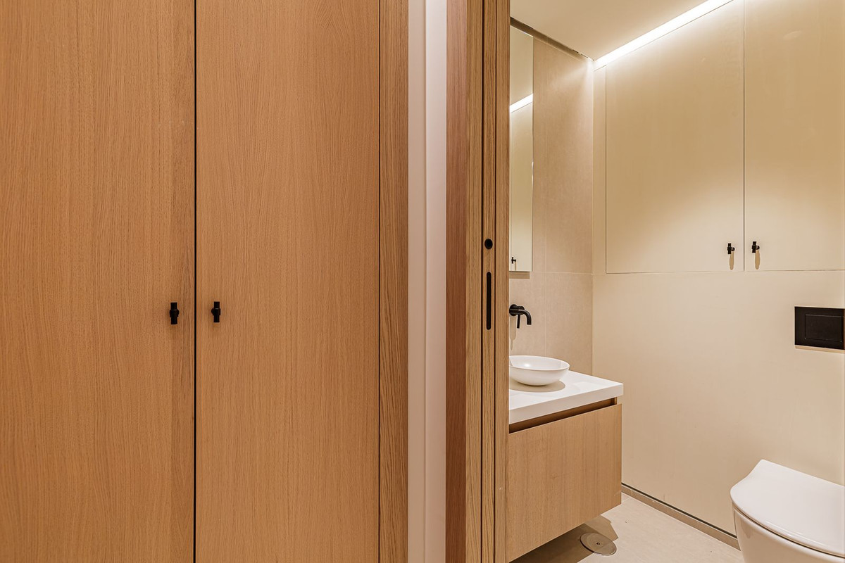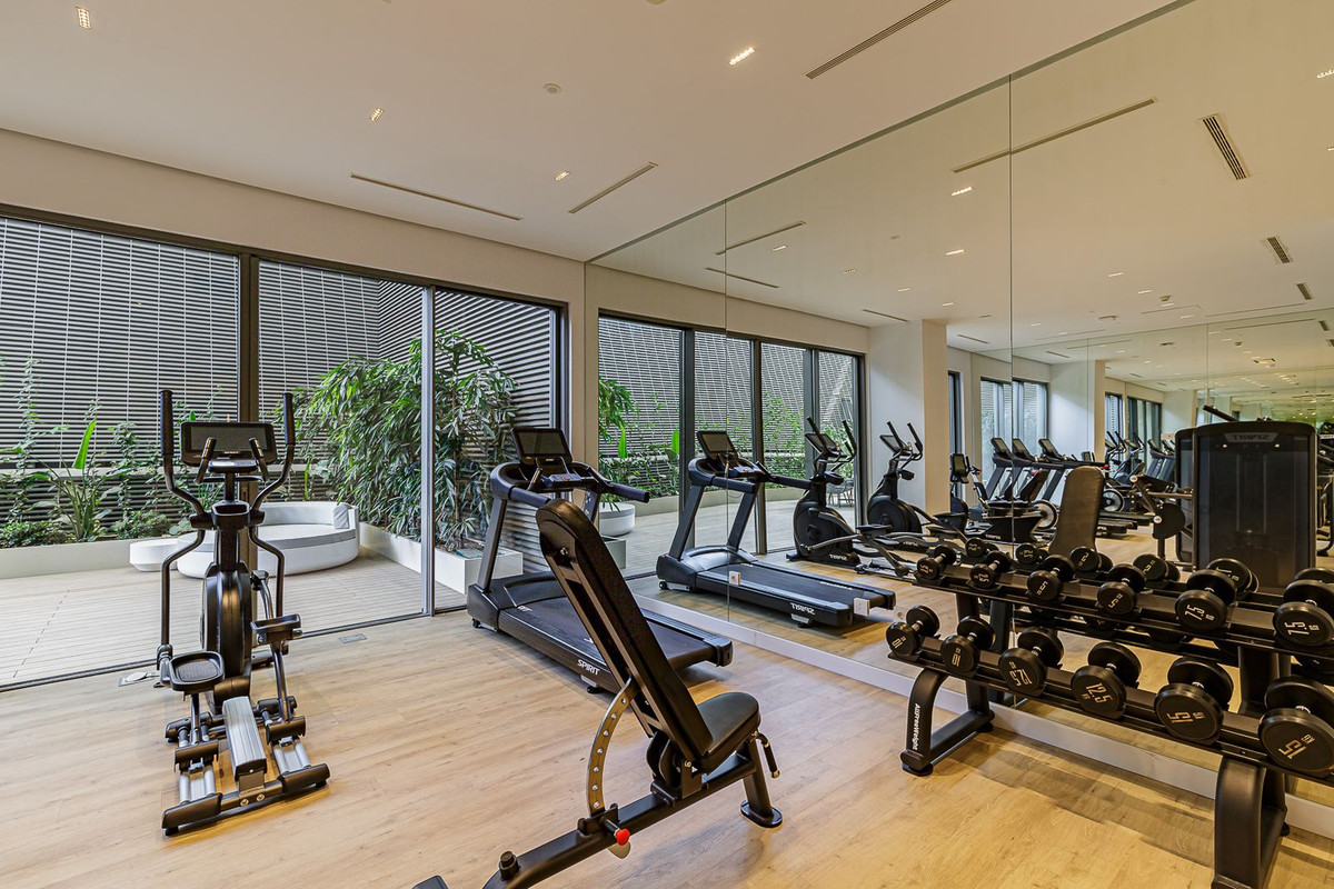 The building, completed in 2024, has a 24-hour reception/concierge, an impressive rooftop pool on the 21st floor with a bar for residents use, heated indoor pool with solarium, free outdoor pool with separate solarium and Balinese beds, a spa area that incorporates another indoor pool