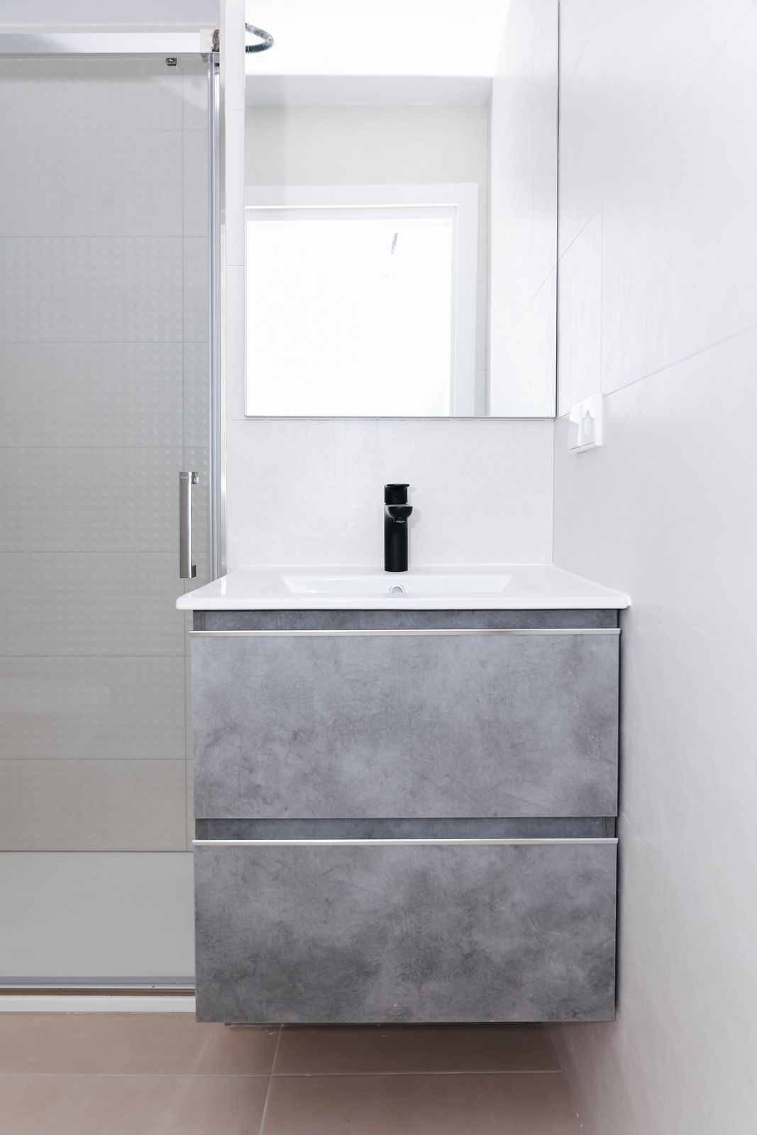 Complete bathrooms with furniture, mirror, and shower screen