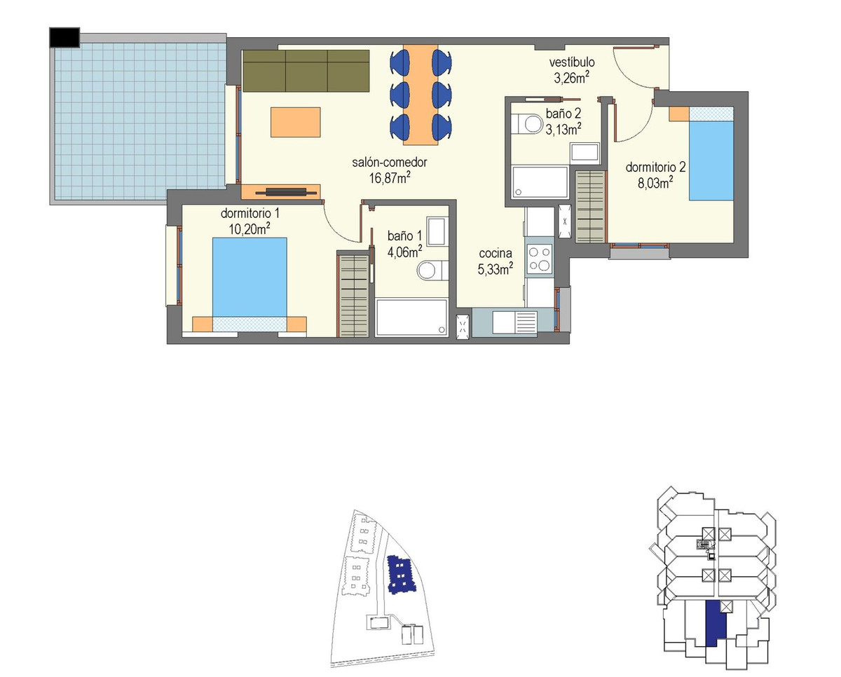 | Features: Covered Terrace, Fitted Wardrobes, Near Transport, Private Terrace, WiFi, Paddle Tennis, Courtesy Bus | |