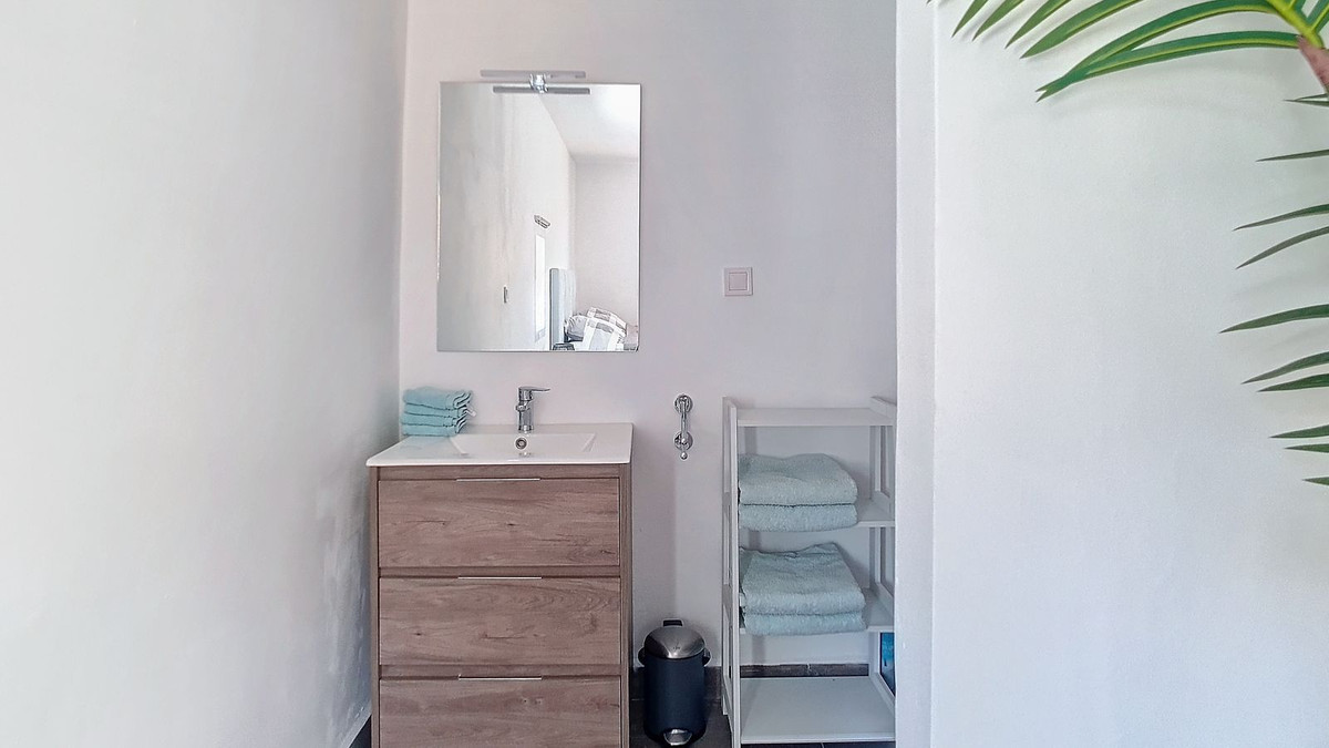 • Second Room: Currently a laundry area with storage space, washing machine, tumble dryer, and a guest toilet.