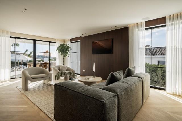 Nestled in the heart of Nueva Andalucía, this newly renovated villa offers the perfect blend of comfort and style. Located in one of Marbella's most exclusive areas, the villa boasts a privileged location with magnificent views of the golf course and the sea, easy access to amenities, and complete privacy.