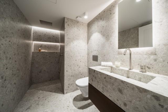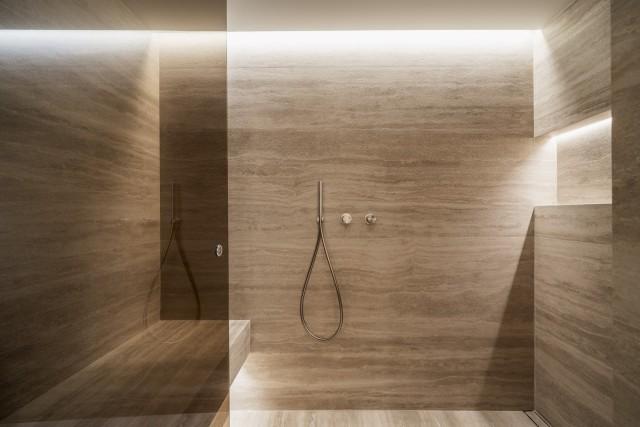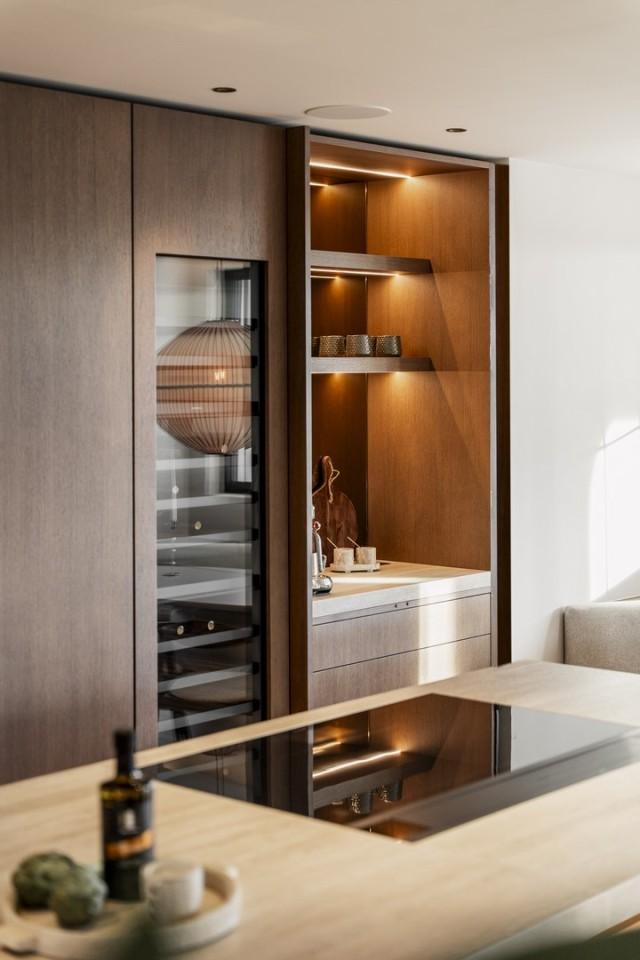 Inside, the home is distinguished by an elegant selection of materials, such as the Chevron wood flooring, which brings warmth and sophistication to every space. The Danespan kitchen combines minimalist design with functionality, creating a welcoming gathering place for everyday life and entertaining. The villa features five spacious bedrooms, strategically distributed to ensure the comfort of family and friends. The wellness area includes an indoor pool, sauna, and steam room, creating a private spa experience within the home itself.