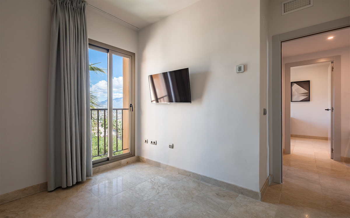 The layout features a welcoming entrance hall leading to a bright and spacious living–dining area with access to two magnificent terraces. The southeast-facing terrace enjoys stunning vistas of La Concha mountain, the Atalaya golf course, and the sea, while the south/southwest-facing terrace captures sweeping sea views and unforgettable sunsets.