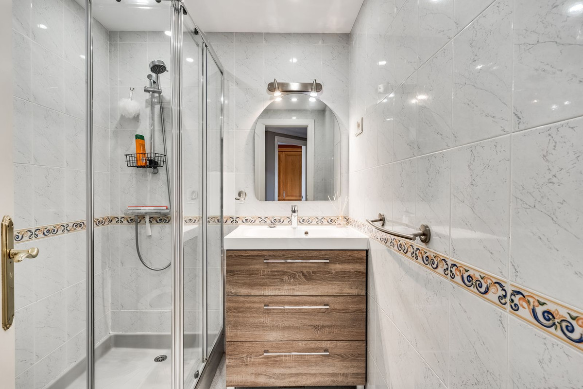 This development presents an L-shape block facing the pool and well maintained beautiful communal gardens. The apartment boasts expansive living spaces, featuring two bedrooms and two bathrooms with one en-suite bathroom. This dwelling also has a spacious terrace offering open views to the communal garden and pools, and partial views to the sea. The property includes an underground parking place.