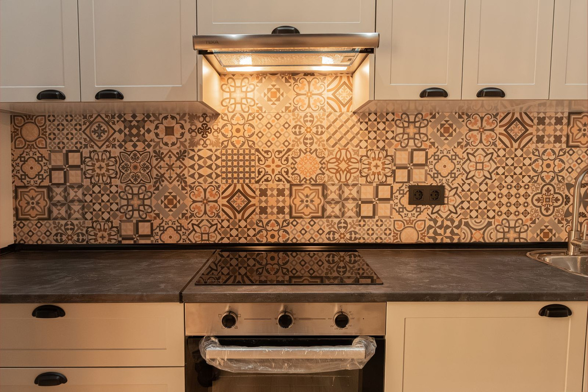 The brand-new kitchen has been custom-designed for this property and includes a range hood, ceramic hob, oven, washer-dryer, and built-in refrigerator — all brand new, unused, and included in the price. The living room and bedroom furniture are also new and unused.