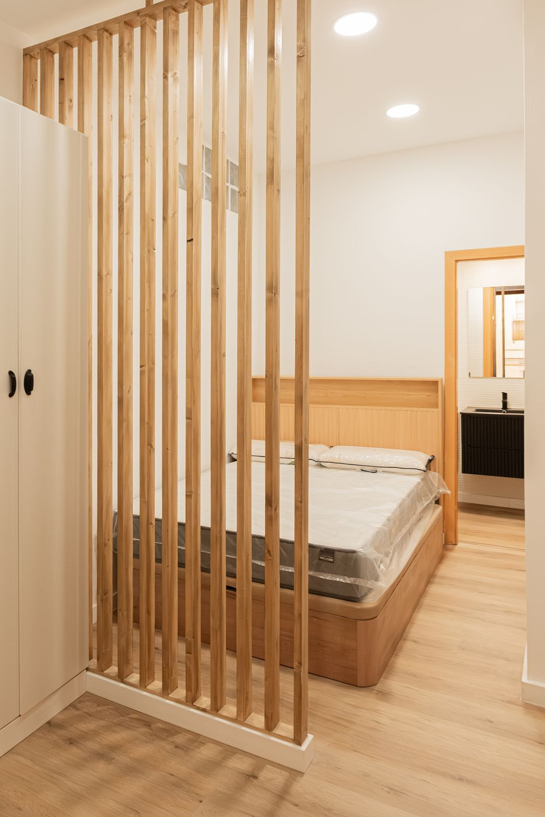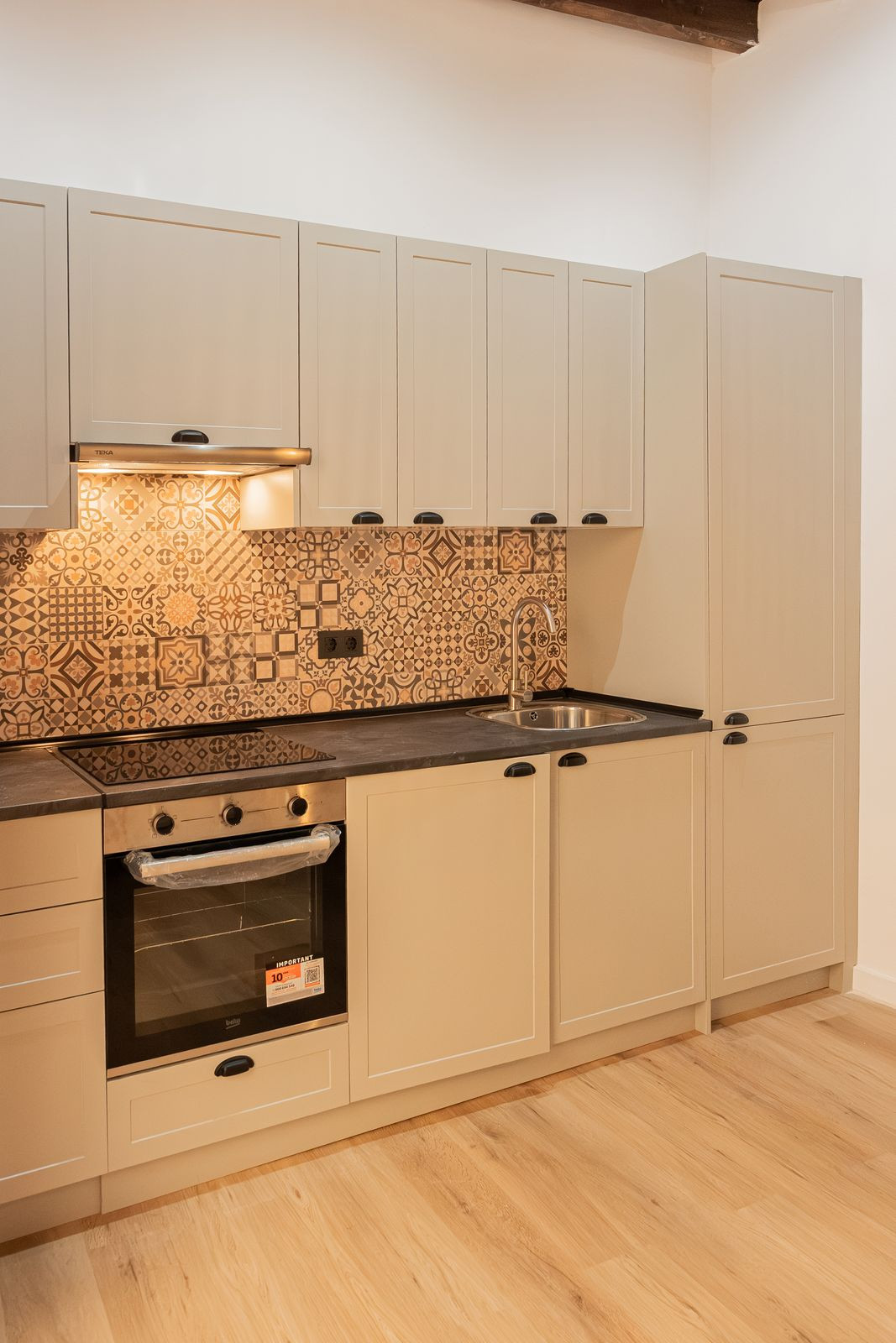 Located in a fully renovated 1880's building, the apartment has a built area of 44 m². Originally featuring one bedroom, it has now been converted into a loft-style layout with an integrated kitchen and living area, offering plenty of natural light through its large window.