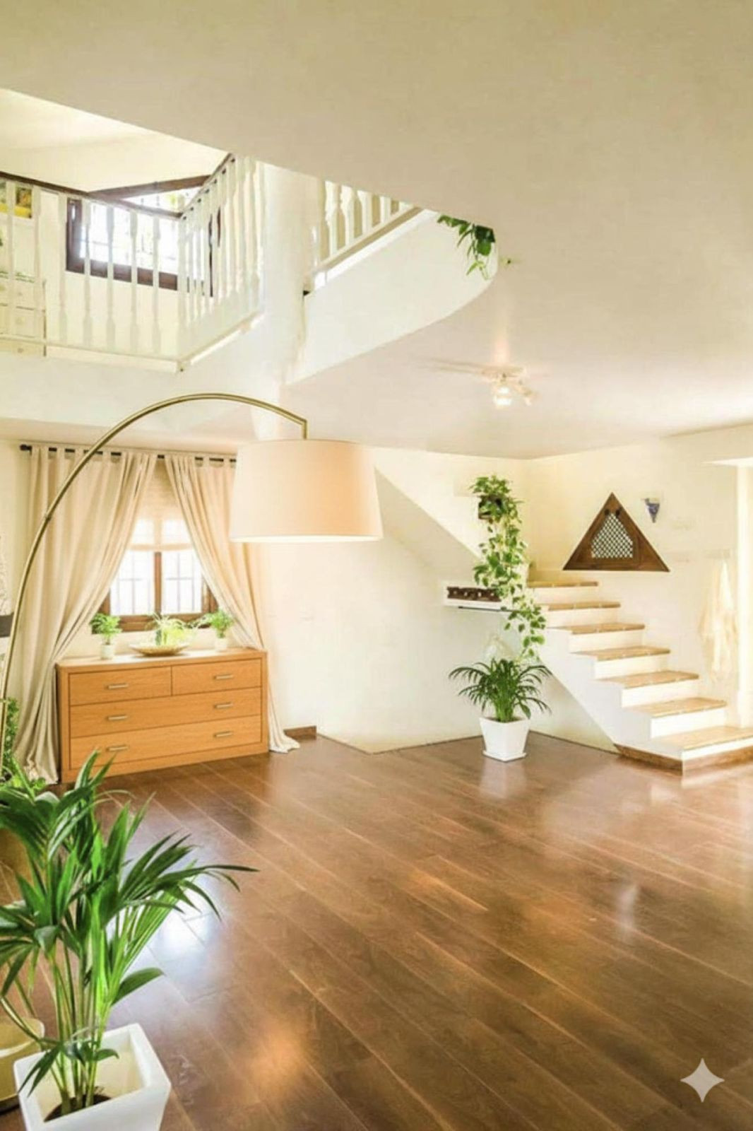 The villa sits on a generous 3,700 m² plot with a mature, beautifully landscaped garden featuring olive trees and enjoying sun throughout the day. Built over three levels with a total constructed area of 233 m², the main house occupies the two upper floors and currently comprises two spacious bedrooms and bathrooms, designed with comfort and wellbeing in mind. The south-facing orientation enhances the sense of light and connection to the surrounding countryside.