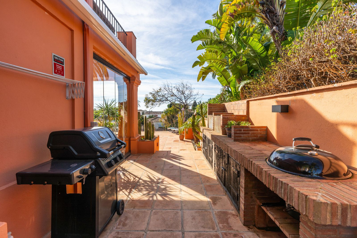 This wonderful villa on 3 levels, built in a timeless traditional style with the highest construction qualities, is located in one of the most exclusive and peaceful streets of prestigious Marbesa/Marbella, just a short walk from the beach and just a short walk from 5 beach restaurants, 2 super markets @ the 5 star hotel Don Carlos. Set on a generous plot, it offers maximum privacy, security and comfort.
