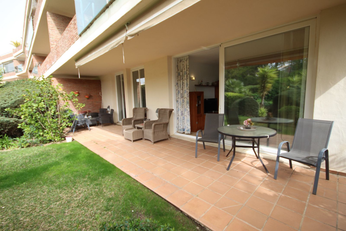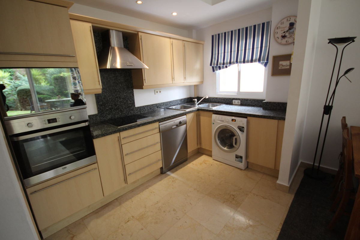 This peaceful complex has beautiful, very well maintained gardens which includes a water / pond feature. It also has a large pool with bar area, gymnasium and sauna. Situated next door to Miraflores golf club, it is a very desireable sought after complex.