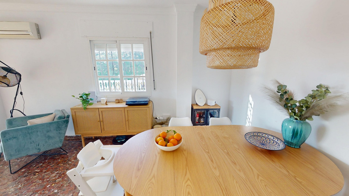 Step into a world where Mediterranean elegance meets modern comfort in this charming 76.2 m2 property located in the heart of Moclinejo, Malaga. This sun-drenched home is your gateway to the coveted Spanish lifestyle, with two bedrooms and thoughtfully designed living space that maximises both form and function. The heart of this home is undoubtedly the stunning kitchen, where culinary dreams come true. Light wood furniture brings warmth, while state-of-the-art appliances, including a sleek gas hob and built-in oven, satisfy your inner chef. The checkered floor adds a touch of classic charm, combining tradition with contemporary style. The living-dining room is an example of the modern Spanish lifestyle, with natural light streaming in through large windows, illuminating the space and offering stunning views of the surrounding landscape. An elegant rattan pendant lamp creates a cozy atmosphere for relaxing or entertaining. The room opens onto a lovely terrace, ideal for alfresco dining or simply enjoying the Mediterranean sunshine. The master bedroom is a serene retreat, with 17.7 m2 of absolute comfort. Mirrored cabinets maximize space and reflect light, making the room feel even more spacious. Another rattan lamp adds a bohemian touch, complementing the airy atmosphere of the room. The second bedroom, currently used as a children's room, demonstrates the versatility of the property. With its neutral palette and charming details, it's ready to adapt to your needs, whether as a children's bedroom, home office, or guest suite. The bathroom is a spa-like oasis, with stylish tiles and modern fixtures. A large window allows natural light to flood the space, creating a bright and refreshing atmosphere. Throughout the property, terracotta floors bring an authentic Spanish character, while modern amenities such as air conditioning ensure year-round comfort. The thoughtful layout and elegant design create a harmonious flow, making every day feel like a Mediterranean holiday. Located in the picturesque village of Moclinejo, this property offers the perfect balance between tranquillity and access to Malaga's vibrant culture. Here, you don't just buy a house; Invest in a lifestyle that embodies the essence of Spanish charm and modern convenience. Make this place your own Mediterranean paradise and start living the life you've always dreamed of. We are pleased to be able to present this dream property to you very soon, either in person or via a virtual viewing. Because this world is unique, just like our Axarquía. In Andalusia. On the Costa del Sol. Here, on the sunny side of life... We are delighted to be able to present this property to you soon, either personally or via virtual viewing. Because this world is unique - like our Axarquía. In Andalusia. On the Costa del Sol. Here, on the sunny side of life...