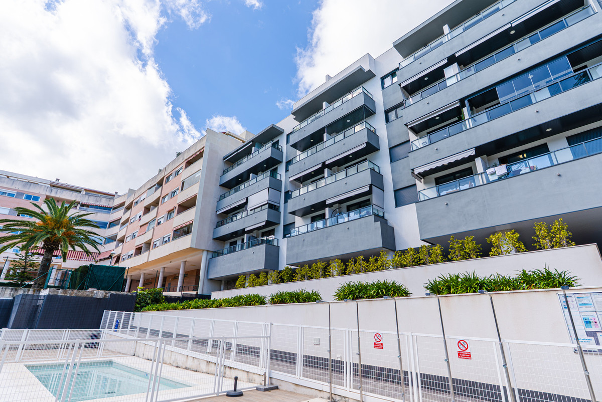With 115 m² of built space, the apartment features a spacious open-plan living and dining area, a fully fitted contemporary kitchen, and direct access to a private terrace overlooking the communal pool — ideal for morning coffee or relaxed evenings.