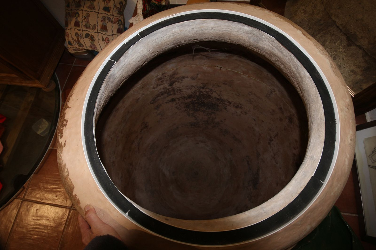 A historic storage room containing perfectly preserved earthenware jars over 200 years old used for wine production