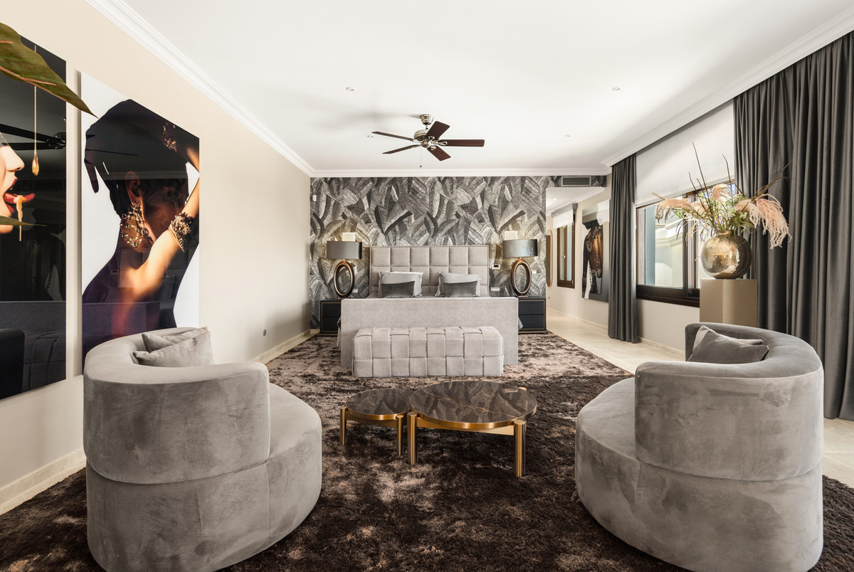 This magnificent luxury villa, situated in the prestigious El Herrojo Alto, features seven expansive bedrooms and eight beautifully appointed bathrooms. The property is set on a large plot, offering breathtaking panoramic views of both the sea and the iconic La Concha mountain. After the renovation, the villa preserved its traditional Spanish architectural charm while seamlessly blending with modern, luxurious finishes.