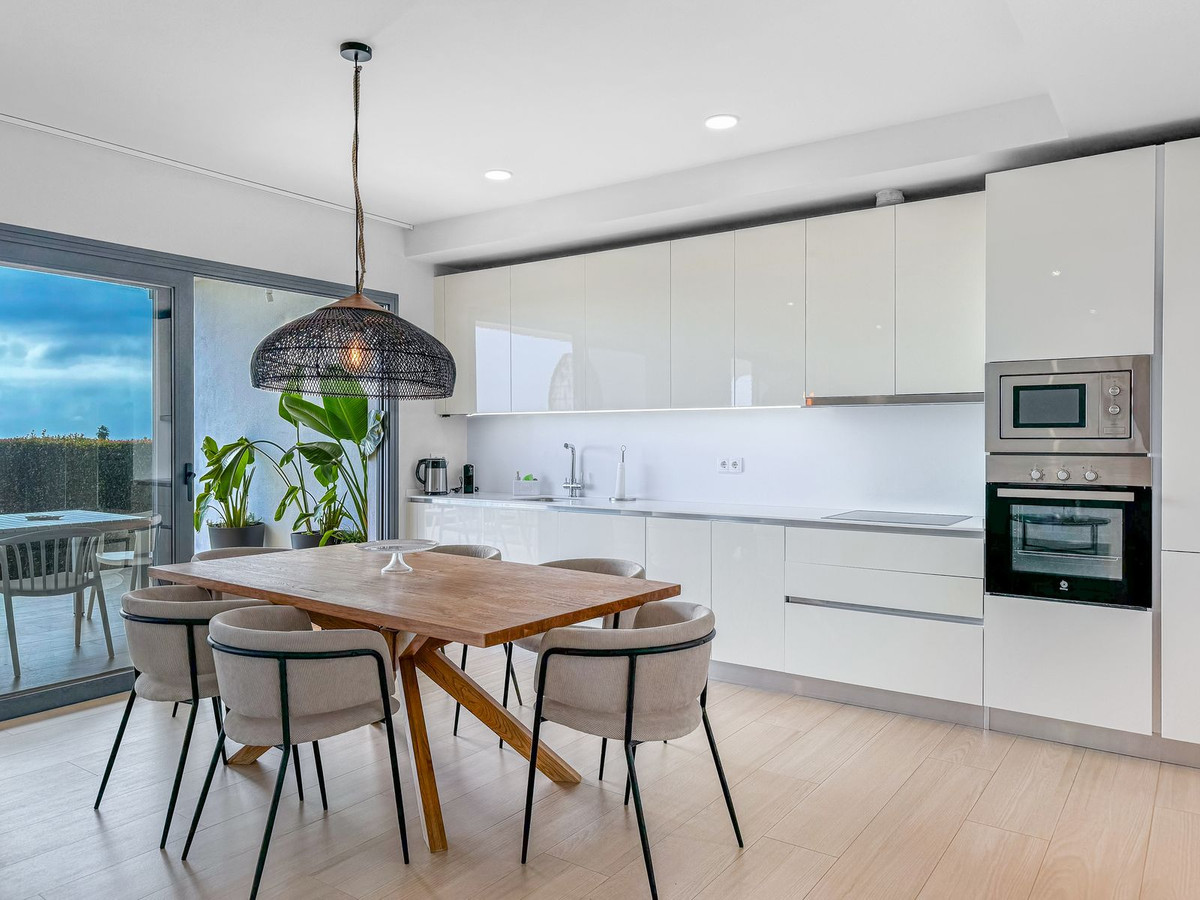 The terrace, which connects to the living area, is the perfect place to enjoy tranquility and nature, featuring an outdoor dining area and a chill-out space to relax while enjoying a sunset over the Costa del Sol.