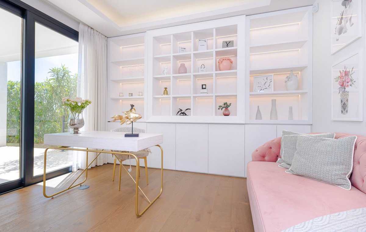 The property features six spacious bedrooms, one of which is currently used as a home office, offering flexibility for modern living, whether for family life, guests, or remote work. Clean architectural lines, high-quality materials, and neutral tones create a sophisticated, turnkey residence ready to enjoy.