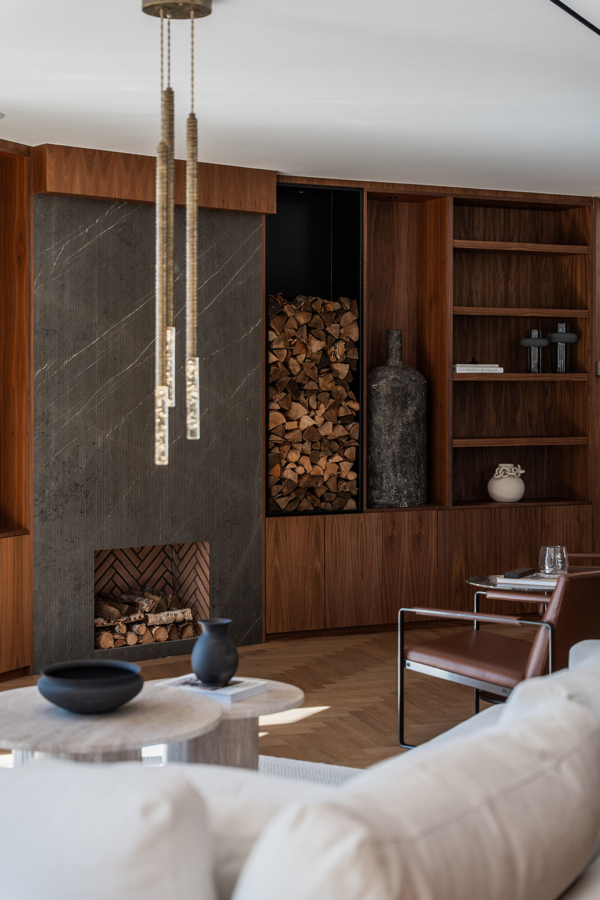 This is not your average Golf Valley villa. It has been redesigned with a clear architectural direction, where proportions, materials and flow have been carefully selected. From the entrance, the detailing is evident: herringbone oak flooring, bespoke walnut joinery, fluted cabinetry and dark-veined marble, all brought together with consistency rather than contrast for effect.