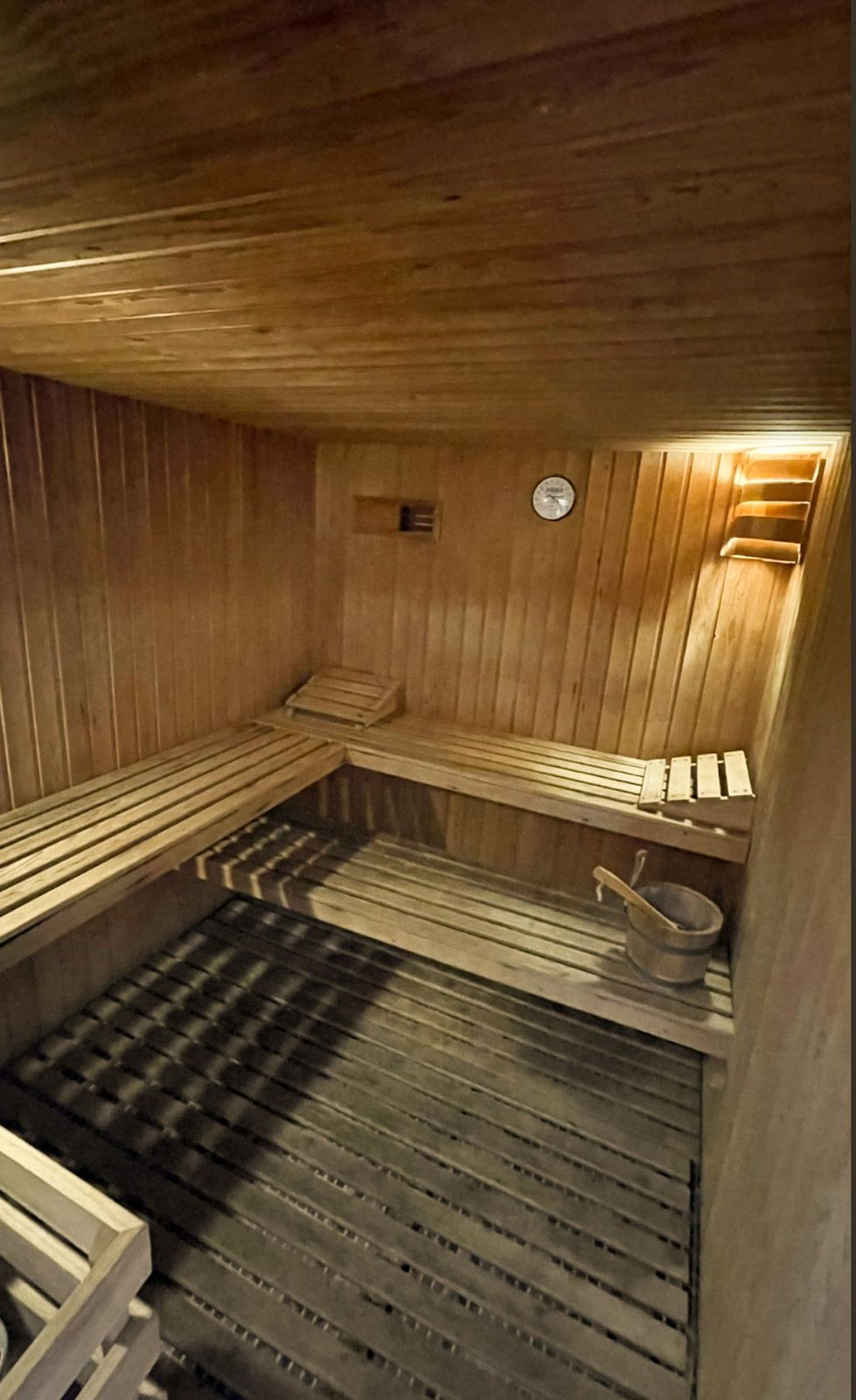Includes a private parking space and storage room. The complex features a swimming pool, extensive landscaped gardens, a fully equipped gym, and a wellness area with jacuzzi, sauna, and steam bath.