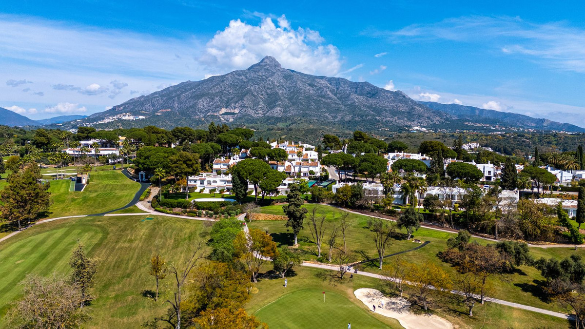 Introducing an exceptional Andalusian villa set in a prime frontline position overlooking Aloha Golf Club, where breathtaking panoramic views extend across the fairways to the iconic La Concha.