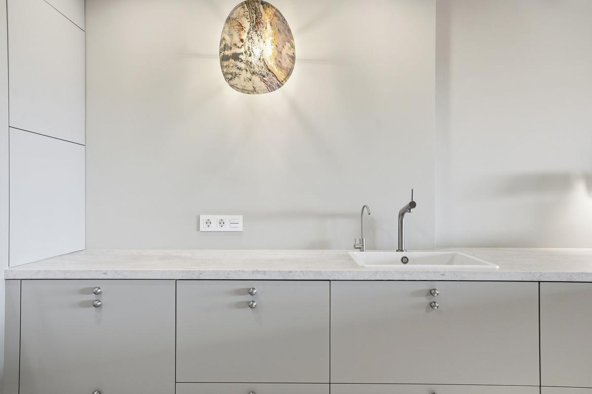 - Elegant marble flooring throughout the apartment