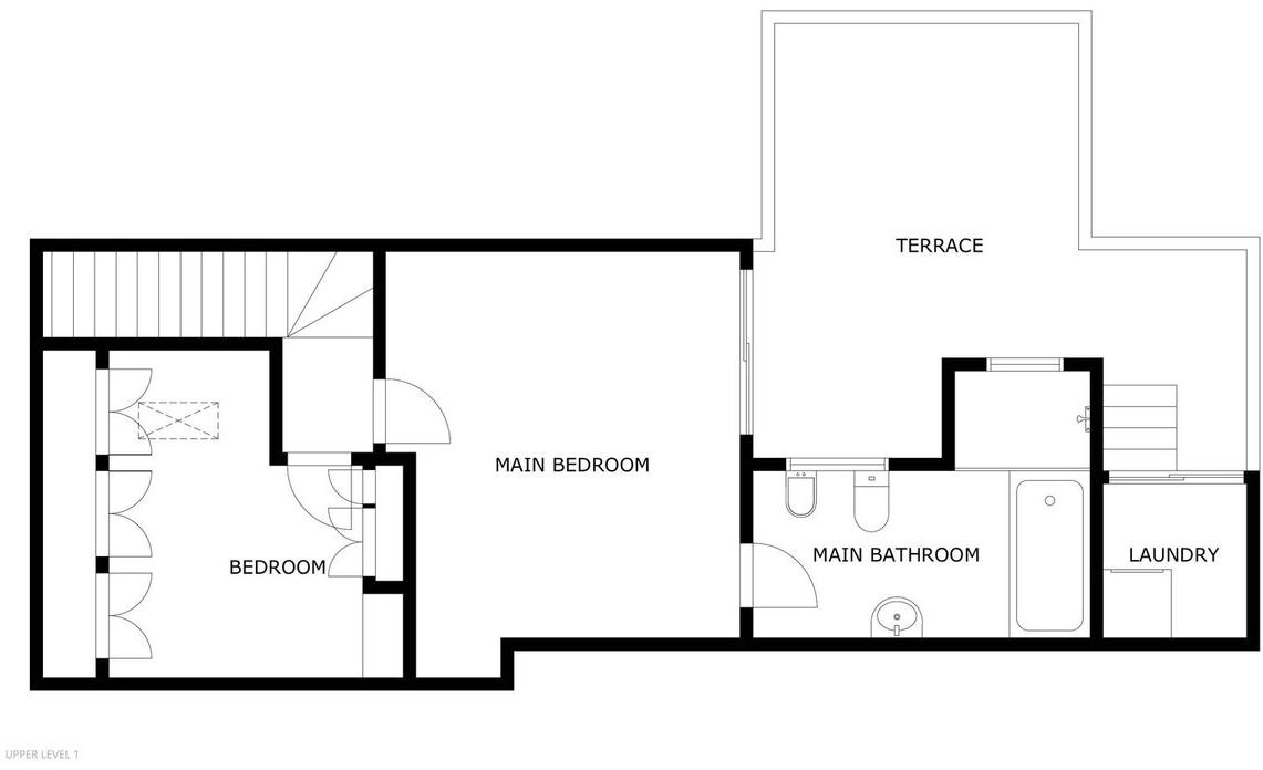 The additional level of approximately 46 m² is laid out with two bedrooms, a bathroom, and a separate laundry area. Thanks to its layout and direct access to the rooftop terrace, this level is perfect as a guest area, workspace, or even a self-contained unit.