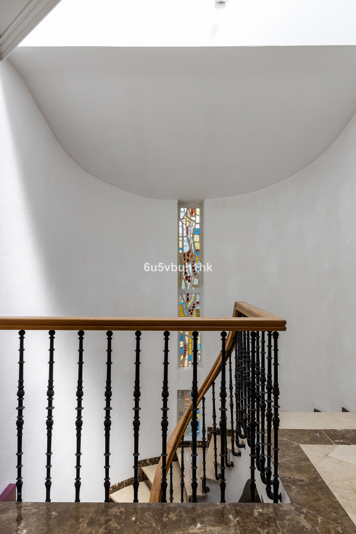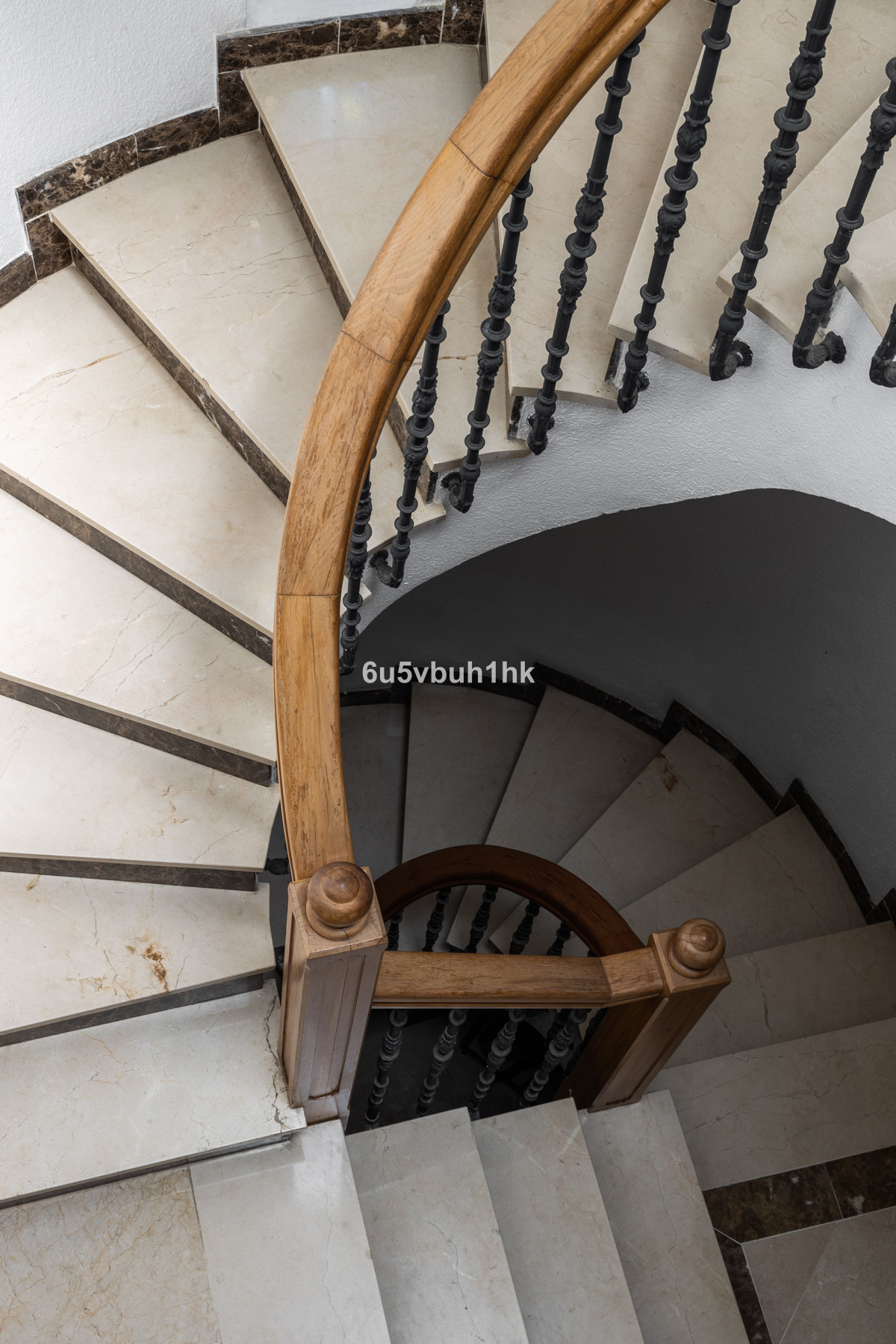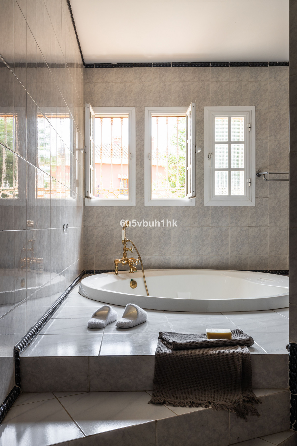 Luxury villa with an amazing tropical garden and a private pool, is a must see. This villa is completely modernized and for sale in El Coto, Fuengirola As you enter the house, you are presented with a large reception area with the house that gives way to a wonderful hall with the stairs on the right. On the first floor you can find a large independent kitchen with a laundry room attached. There's a guest toilet, a dining room and a spectacular L-shaped living room with a fireplace and large windows overlooking the garden and pool. The second floor has 4 spacious bedrooms with terraces that have beautiful views. The master bedroom has its own suite bathroom with a dressing room, it also includes one shared bathroom. In the garden you find a barbecue area, a terrace and a lawned area with fruit trees and a private pool. This property has a double garage plus a separate guest apartment, and in the basement you can find a large wine cellar. The property is ideal for rentals and family. Walking distance to all amenities, supermarket, pharmacy, restaurant and shops. Ideal for permanent living, holidays and has a huge rental potential.