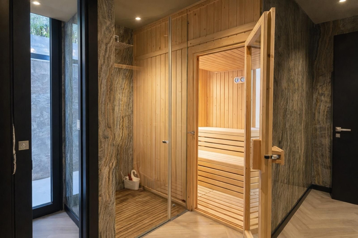 The villa features 3 spacious bedrooms and 5 luxurious bathrooms, finished to the highest standards with high-end design, bespoke furniture, and premium materials throughout. Expansive floor-to-ceiling windows ensure abundant natural light, creating bright, open interiors and a seamless connection to the outdoor areas.