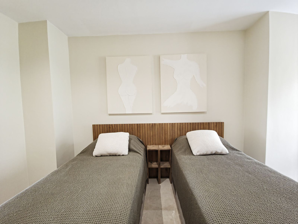 Finished to a high standard, the property features a large, bright covered terrace and a private parking space, visible directly from the bedroom. The urbanisation is well maintained, with landscaped gardens, an adult swimming pool and a separate children’s pool, all within a lush green environment.
