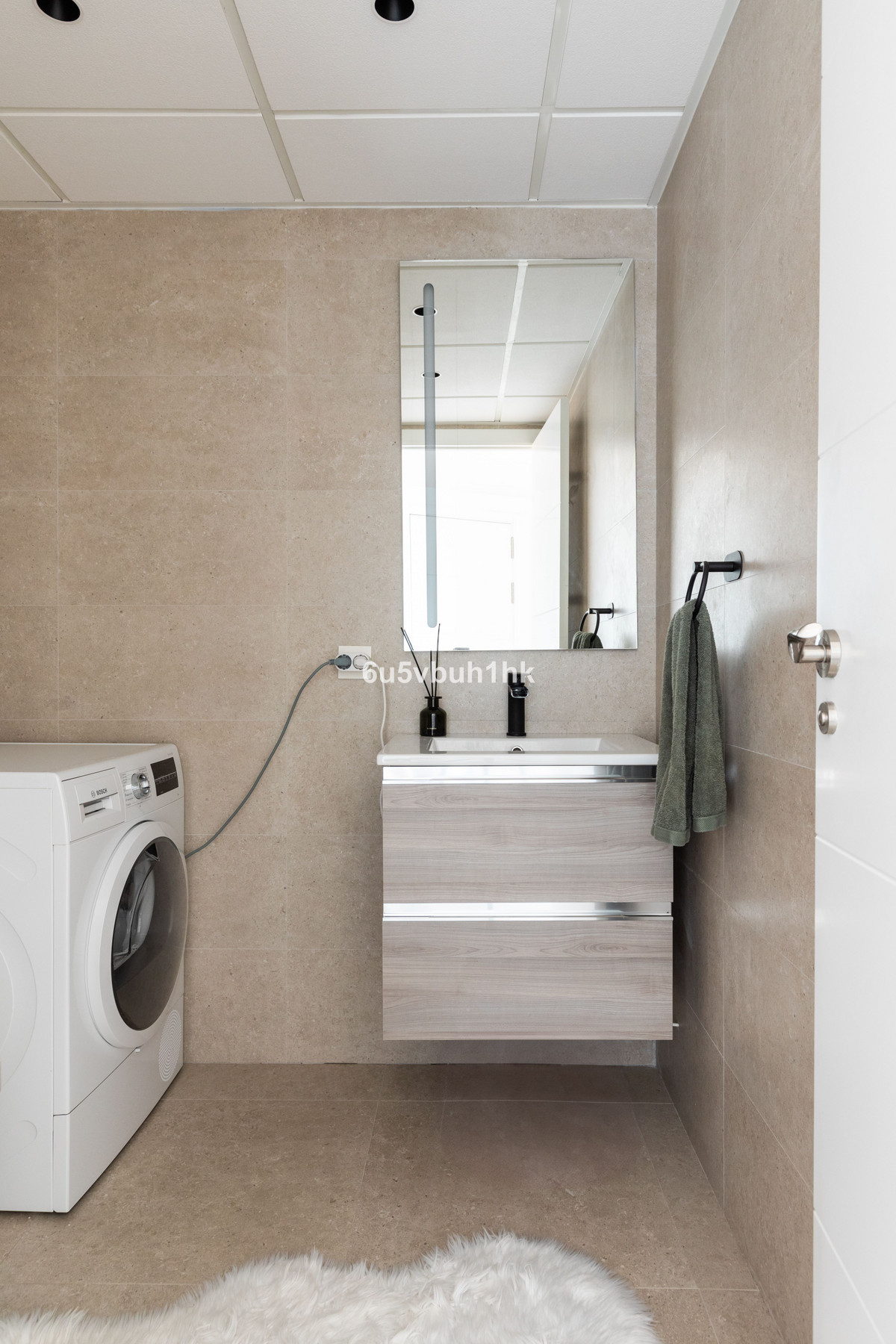 The lower level offers a rare feature for Spanish apartments — a large and welcoming hallway that enhances the feeling of a true home. Here you’ll find three bright and spacious bedrooms. The master bedroom has an en-suite shower room and direct access to a private enclosed patio — a versatile space perfect for a sauna, gym, or shaded relaxation area. The other two bedrooms also enjoy sea views and share a modern shower room.