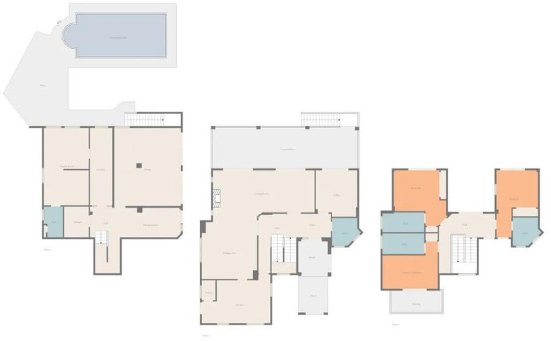 The layout of the villa includes 5 bedrooms and 5 bathrooms across three levels and a total built area of approx. 292 m². The main living room features a fireplace and connects both to the dining area, office and a fully equipped kitchen, as well as an additional practical pantry. Outside, the villa offers a privileged setting thanks to its well-maintained mature gardens, private pool, and spacious terrace, ideal for outdoor living. Additional highlights include a barbecue area and private gardens.