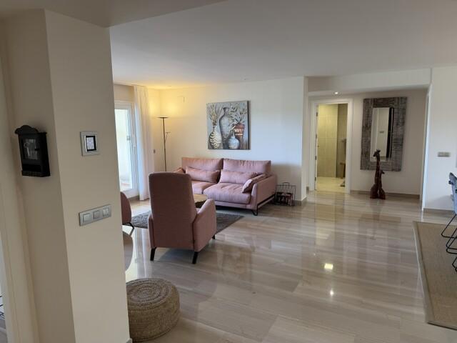 The apartment’s standout feature is its large terrace, with impressive views of the golf course and the sea – perfect for relaxing, enjoying outdoor living, and dining in the sun all year round. Additionally, the property has a private garden/terrace area of 53 m² for exclusive use, providing extra outdoor space and creating a rare combination of apartment and villa-like feel.