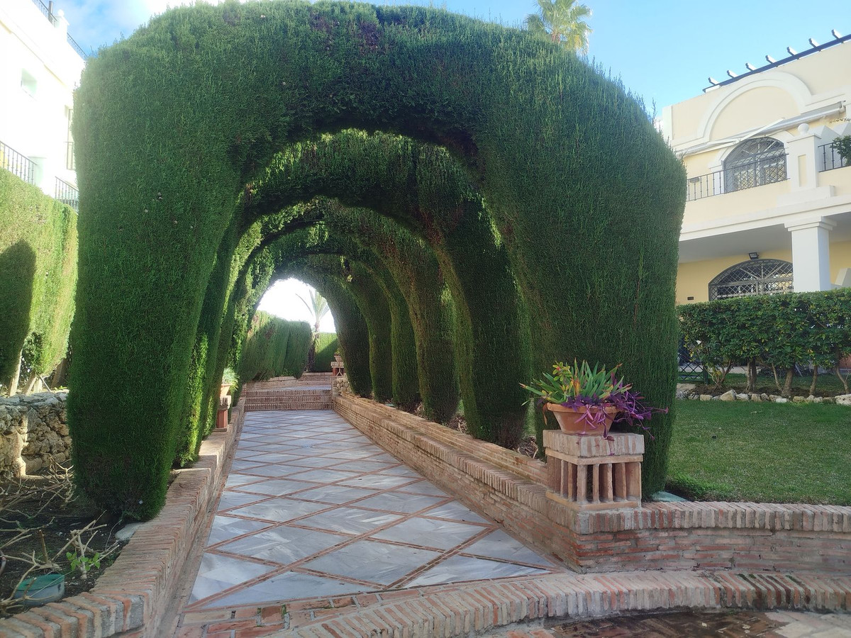 A pristine 2 bed ground floor apartment in Aloha gardens within the secure Gated community with 24 hour security this property is close by golf courses , shops and restaurants. It has been recently reformed and has bright new American style kitchen opening onto a large living / dining room thats also opens onto a large covered terrace overlooking a large wrap around private garden. There is masterbedroom with ensuite bathroom and a further guest room with a seperate guest showeroom ,you have ducted hot and cold air conditing throughout you also have easy access to the private garage space ,storeroom , and all the landscaped gardens and communal pools of the complex . 2 bed Ground Floor Apartment, Aloha, Costa del Sol.