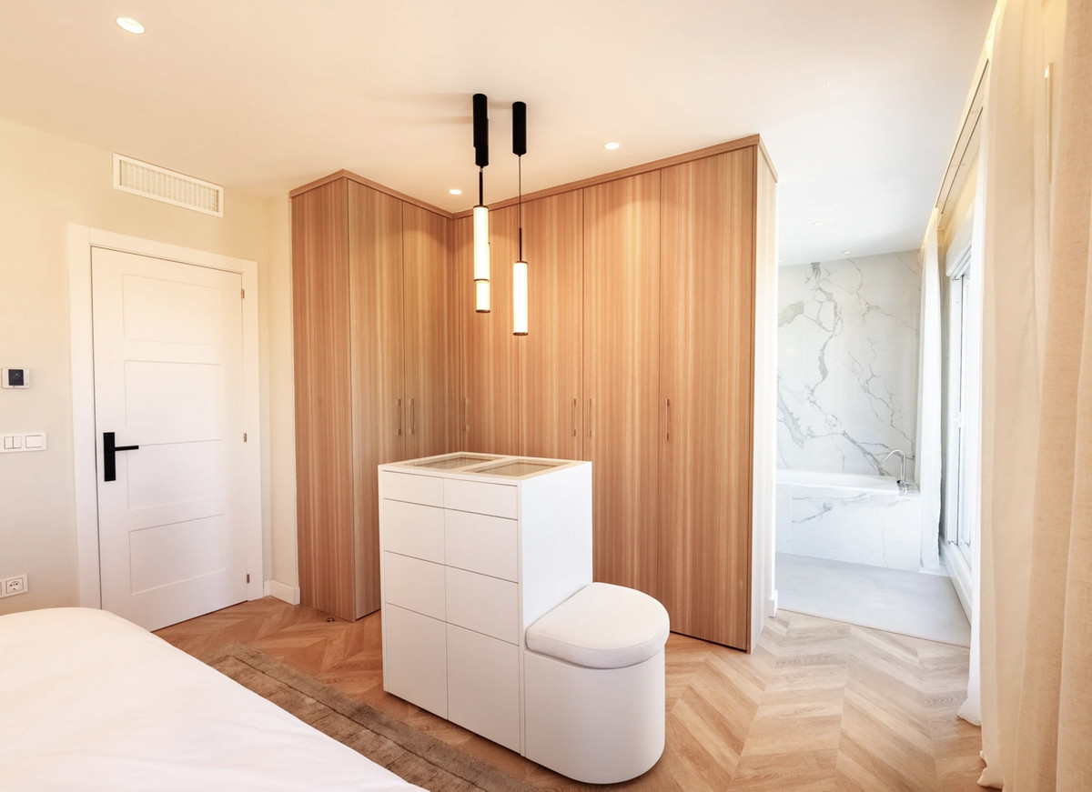 Outdoor living is at the heart of Casa Marisal’s design. Terraces across various levels invite al fresco dining, sunbathing, or quiet moments with panoramic views. The master suite terrace is particularly captivating, offering sweeping vistas of Marbella’s landscape from its private lounge area. Within the secure community of Altos de Salamanca, residents enjoy access to a large communal swimming pool, mature landscaping, and a peaceful, private environment that remains connected to the vibrant lifestyle offerings of the Golden Mile.