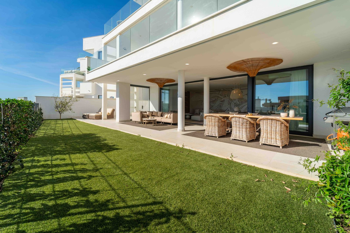 This is not merely a ground-floor apartment; it is a sprawling garden residence that offers the privacy and scale of a villa with the effortless lifestyle of the Costa del Sol’s most prestigious gated community. Positioned perfectly within Phase II, the home faces due south to capture the full trajectory of the Mediterranean sun, gazing out over a protected green zone where the horizon meets the sea.