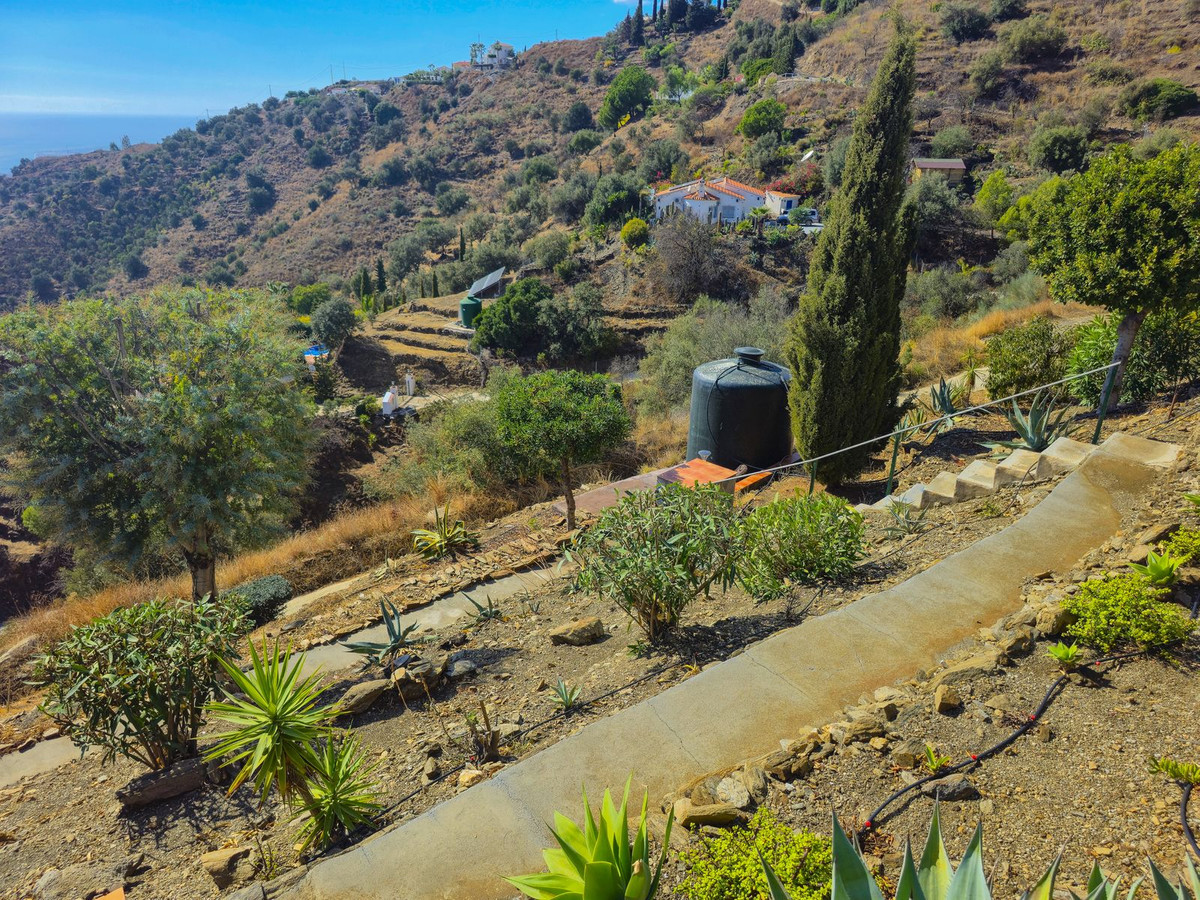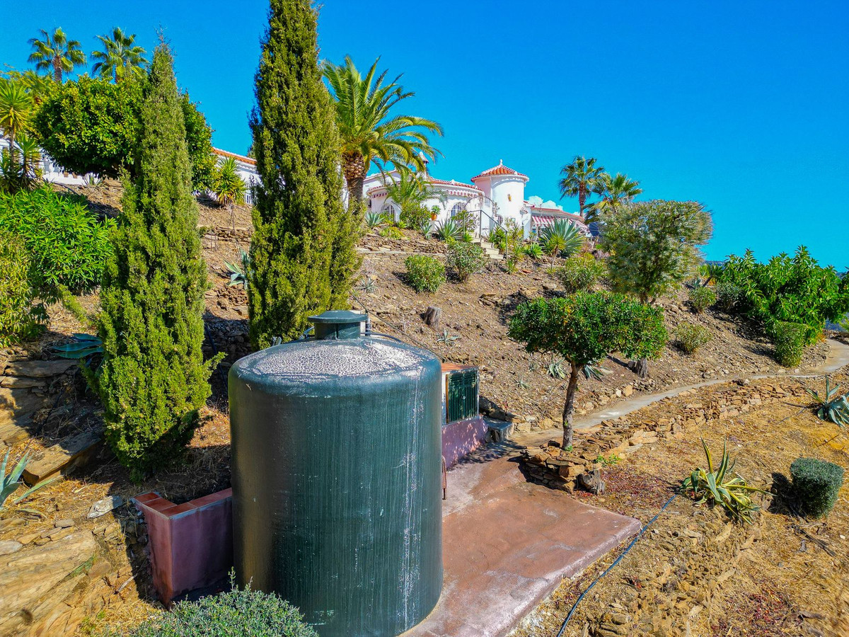 The property is situated on a spacious plot of approx. 9,500 m², spread across two plots, and offers a high degree of self-sufficiency. You have your own water source, a connection to the Vincente water supply and two spacious water tanks of 10,000 and 15,000 litres. In addition, rainwater is efficiently collected and used for the automatic irrigation system, ensuring the garden remains in optimal condition all year round.