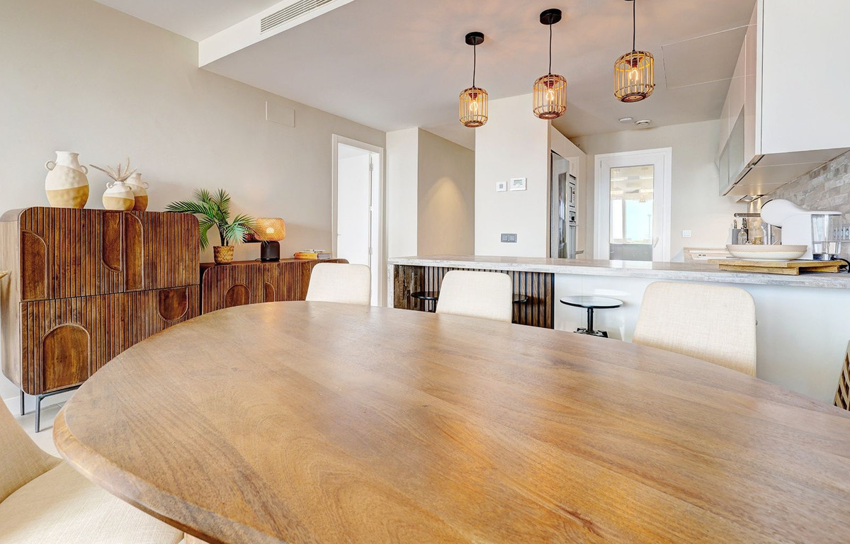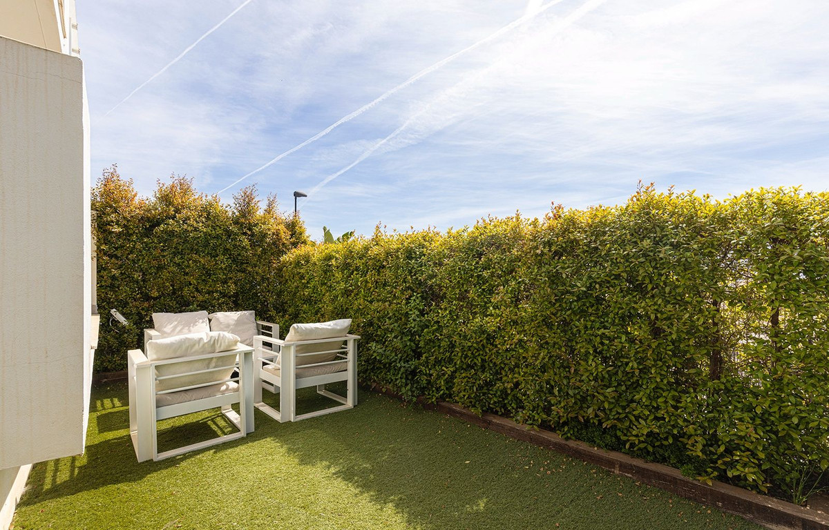 This beautifully presented modern apartment with a private garden offers a stylish open-plan living and dining area, complemented by a fully equipped kitchen featuring high-end SIEMENS appliances. The living space seamlessly extends to a private terrace, creating the perfect setting for indoor-outdoor living, while the private garden provides additional outdoor space to fully enjoy the Mediterranean lifestyle.