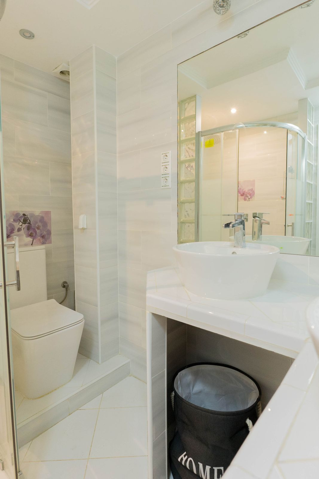 The apartment includes a cozy double bedroom and a single bedroom, perfect for resting or hosting guests. The kitchen is very modern and elegant, with all appliances included.