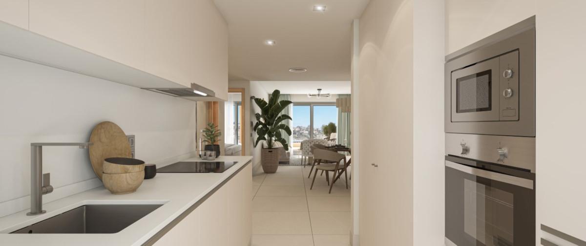 The apartments have 2 or 3 bedrooms and 2 full bathrooms. They are southeast or southwest facing, with many homes enjoying sea views, allowing you to admire the coastal scenery from your own home. Every home has a terrace, and some also have a garden or solarium, depending on the design project. There are penthouse apartments with solarium terraces available.