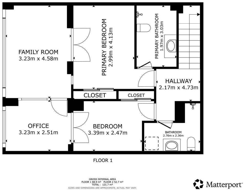 The lower level: two double bedrooms and two fully renovated bathrooms, plus fitted wardrobes throughout. This floor opens onto a second, fully enclosed terrace with glass curtains, currently set up as two home offices, but equally suited to use as additional bedrooms, a studio, or a playroom. Ideal for remote workers, families, or anyone needing flexible space.