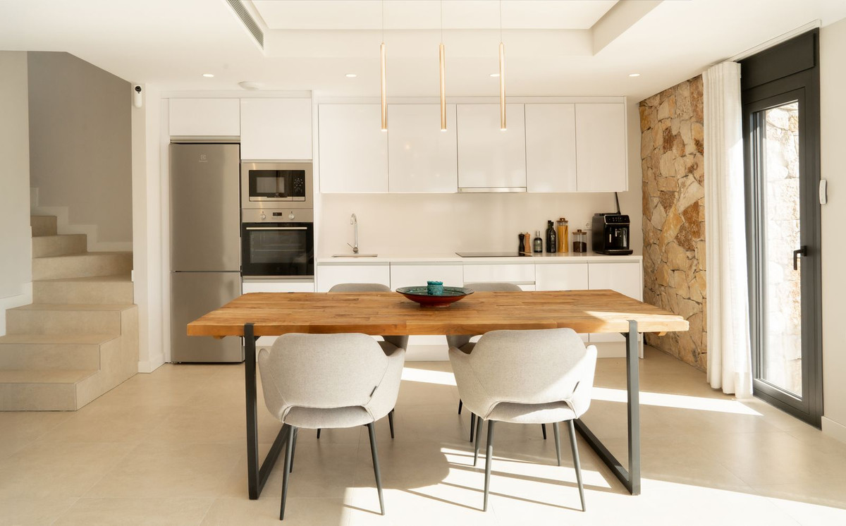 There are three comfortable bedrooms and three bathrooms, which gives a lot of flexibility whether you’re using it as a main residence or a second home. Upstairs, the private solarium really completes the property. It’s a space where you can fully enjoy the climate here, whether that’s relaxing during the day or having dinner in the evening with complete privacy.