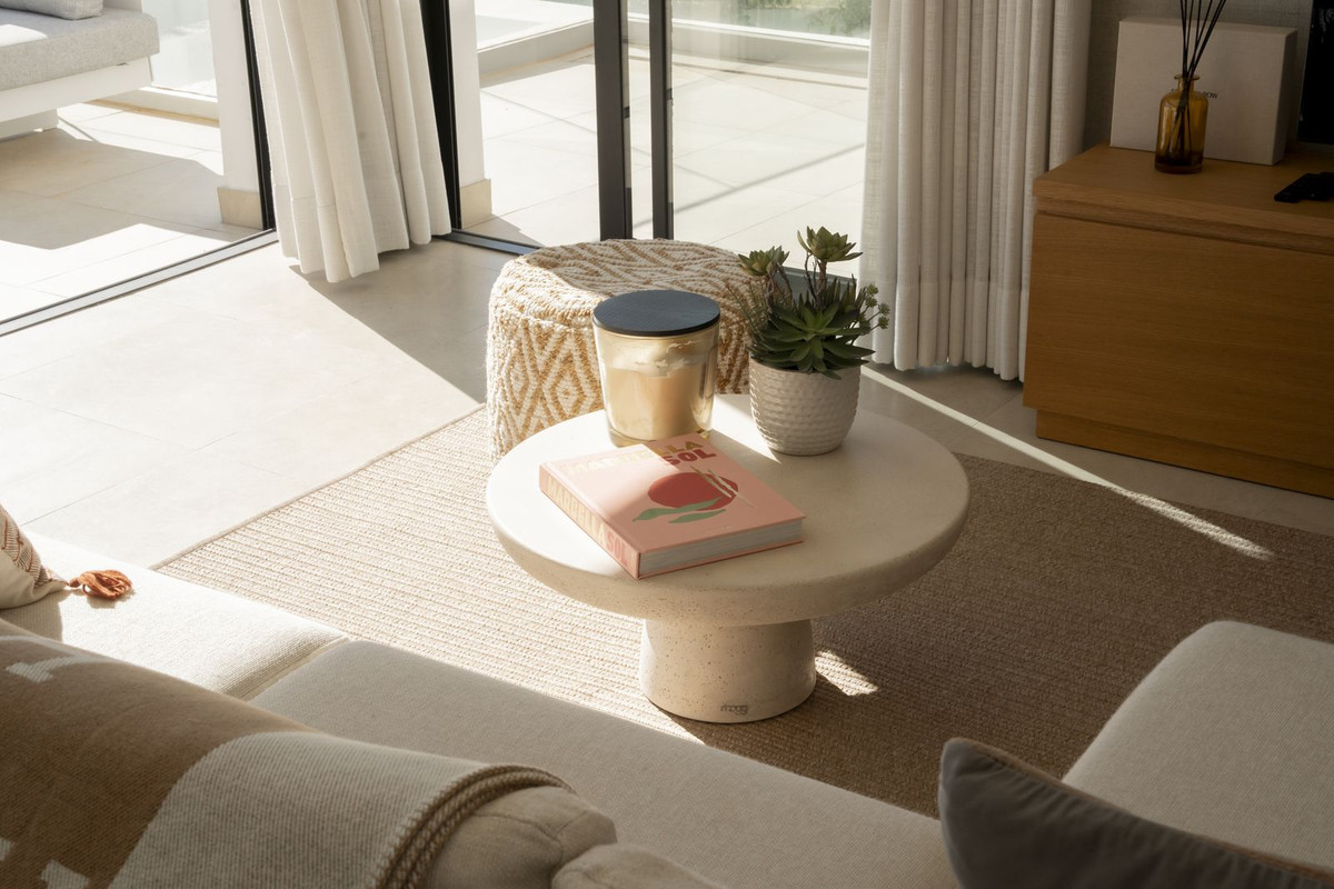 The apartment is distributed over two levels and immediately feels bright and open. The main living area flows naturally into a spacious terrace through large sliding doors, which makes the entire space feel bigger and more connected to the outdoors. It’s the kind of layout that works just as well for everyday living as it does for hosting.